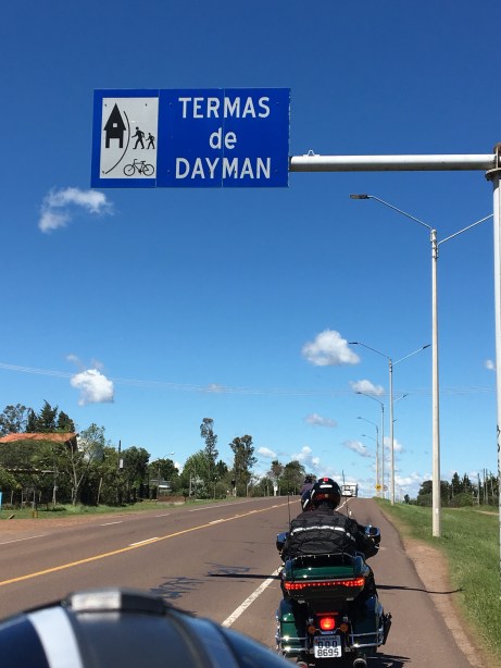 A passagem na fronteira, em Barra do Quarai, foi um marco no passeio, iniciando a parte internacional da viagem. Imigração rápida, com preenchimento dos dados pela atendente, bem simpática. Entramos na ruta 3 que iria nos acompanhar até Salto, mais especificamente a Termas do Dayman. A estrada estava boa, com tráfego bem leve para uma segunda feira. No primeiro abastecimento já deu para ver que a gasolina uruguaia é mais cara que a brasileira. Interessante notar que as motos não pagam pedágios no Uruguai. Passamos pela entrada das Termas del Arapey, nossa primeira opção. Foram bem recomendados os hotéis da região, mas além de caros e com pouca disponibilidade, decidimos andar um pouco mais, por ser próximo a Uruguaiana. Chegamos cedo no hotel Termas Posada del Siglo XIX. Havíamos reservado com certa antecedência devido à grande procura. Foi uma surpresa agradável. O hotel era muito confortável, com um parque aquático bem grande. A água chega do subsolo com uma temperatura de 47ºC, tornando os banhos super relaxantes. No almoço experimentamos a famosa carne uruguaia e a janta foi no próprio hotel, com preços um pouco salgados, mas estávamos em um resort. Rodamos 230 quilômetros hoje.