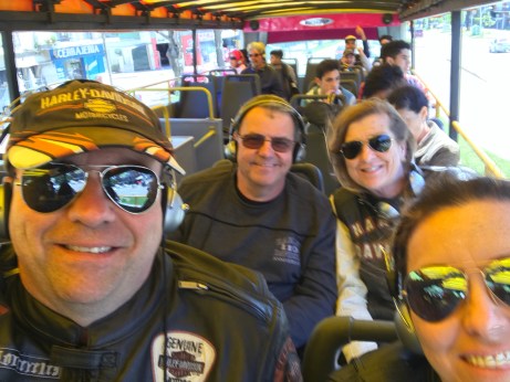 No dia seguinte havíamos combinado um passeio para conhecermos melhor a cidade. Optamos pelo ônibus de turismo estilo hop-on, hop-off. Durante 2 horas o ônibus passa pelos pontos mais característicos da cidade com fones de ouvido comentando sobre cada parada em varias línguas. Como fizemos o primeiro passeio do dia, iniciando as 10:00 hora, retornamos ao Mercado Del Puerto na hora do almoço. Nada melhor que experimentar a parrilla uruguaia. Assados de todos os tipos podem ser encontrados ali, assados na frente do freguês. O Medio y Medio é uma bebida servida no local. Meia porção de espumante e meia de vinho branco seco, servida gelada. Oferecem como brinde para chamar os clientes. A visita ao mercado é muito interessante, com visual peculiar e o aroma dos assados espalhados em todo o ambiente.