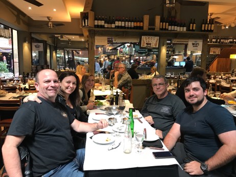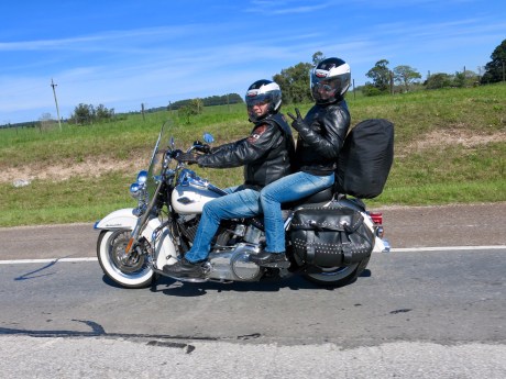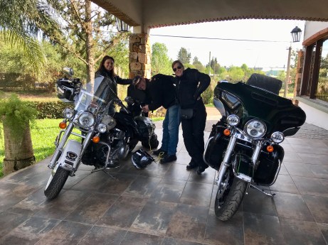 Parada na estrada para um lanche rápido, onde comemos o melhor sanduíche de salame dos últimos tempos. A passagem na imigração para dar saída do Uruguai foi muito rápida, com a funcionária nem olhando para nossa cara. Chegamos a tempo de umas comprinhas no free shoping e uma passada na loja do nosso amigo Kalil, personagem conhecida no mundo Harley Davidson pelos eventos promovidos todos os anos no Chui. Hospedagem no Hotel Bertelli, nosso conhecido de outras viagens. A janta merece destaque: um filé à parmegiana sugerido pelo garçom que comemos com gosto, raspando os pratos, por sinal enormes.
