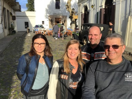 No quarto dia, amanhecemos com um café da manhã, medialuna, dulce de leche e mais uma variedade de coisas apetitosas. Motos carregadas, retornamos para a ruta 3, no caminho de Colônia de Sacramento. Neste trecho fui enganado pelo Google Maps. Foi sugerido uma rota que no dia indicava quase uma hora de ganho no tempo de viagem em relação a outra opção. Na época da preparação do roteiro, chequei as duas opções e a mais curta parecia ser a ideal. Engano nosso. A ruta 24 estava em obras em grande trechos, com muitos buracos. Mas o pior estava por vir. A ruta 55 era um buraco só. As Harley’s sofriam com o asfalto esburacado e muitas vezes até falta de asfalto encontramos. Foram 70 quilômetros a 60 km por hora, perdendo bastante tempo e tornando a pilotagem bem chata. Lanche próximo ao meio dia numa parada para abastecimento na saída da ruta 55 e entrando na ruta 21. Aí o asfalto ficou ótimo, sendo um passeio até a chegada em Colônia. Escolhemos um hotel bem próximo ao centro antigo ou cidade velha como é chamado o bairro. O hotel Beltran foi um escolha boa, com estacionamento e decoração retrô. Saímos para uma pequena exploração a pé próximo ao hotel e jantamos mais uma vez a carne uruguaia próximo ao hotel na Parillada El Porton. Aqui um fato curioso. Jantamos cedo normalmente e por volta das 19:00 horas começamos a procurar um restaurante aberto. Não encontramos. Haviam nos indicado esta Parrilla e fomos até lá. Estava às escuras, com alguma luz no fundo. Achamos que não abriria neste dia. Consultamos o site do restaurante e lá estava a informação que abria as 20:00 horas. Ficamos próximos esperando e exatamente as 20:00 horas entraram os funcionários e a casa abriu. Claro que lá dentro o assador já tinha as carnes assando mas interessante que os últimos chegaram no horário da abertura.