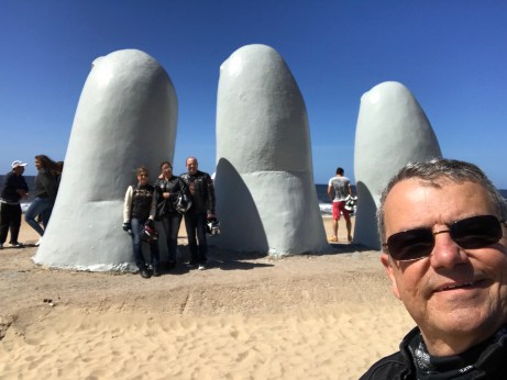 No sábado, 8º dia da viagem, após o ótimo café da manhã no hotel, saímos para passear pelos pontos turísticos de Punta. Fotos com os leões marinhos,no monumento Los Dedos e uma esticada até Pedro Inácio, passando pela ponte ondulada. Motos carregadas, e por volta do meio dia partimos para o Chui, não sem antes um pit-stop na sorveteria Freddo para saborearmos o famoso sorvete de “dulce de leche” (imperdível).